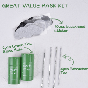 2PC Green Tea Mask Stick Blackhead Remover for Face, 5 in 1 Poreless Deep Cleanser Green Tea Mask for Pore Strips,Purifying Face Mask, Included1 serum & 10 blackhead sticker & 4 Extracter Tool, Suitable for Men and Women